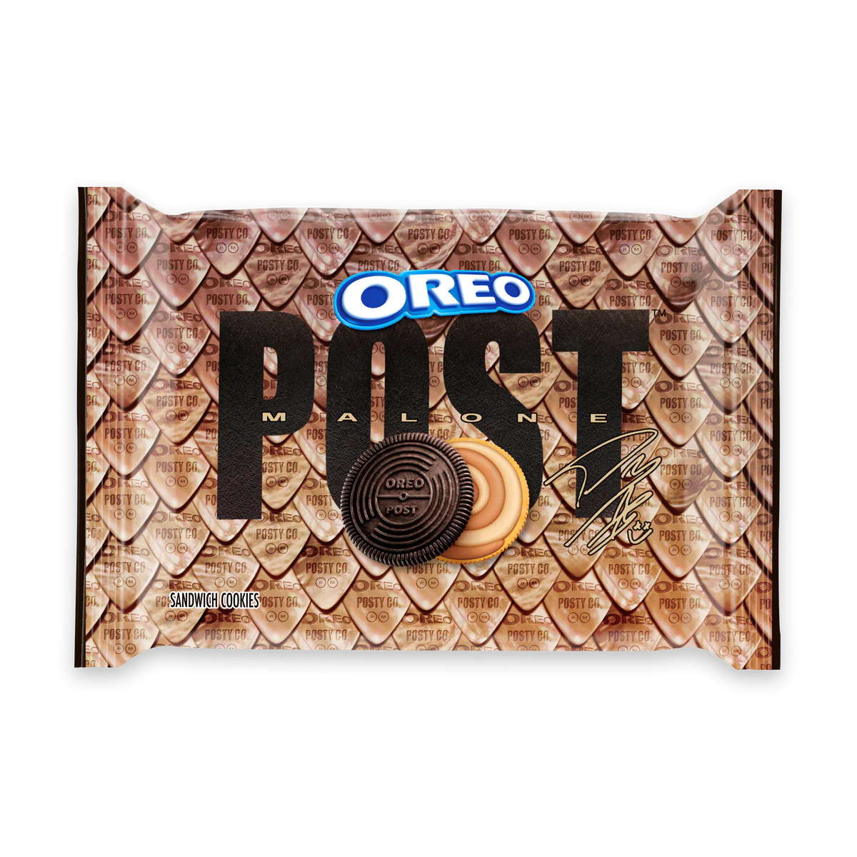 The OREO x Post Malone collab introduced a first-of-its-kind swirled crème cookie – blending salted caramel and shortbread between chocolate and golden wafers.